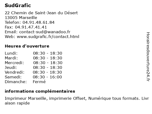 1 Imprimerie du Levant (Distance: 0,05 km) 17 Chemin de Saint-Jean du Désert, 13005 Marseille du, impression, imprimerie, imprimeurs, levant, vinyle 2 L'Imprimerie Nouvelle de Marseille (Distance: 1,00 km) 2a Rue du Monastere, 13004 Marseille de, impression, imprimerie, imprimeurs, l'imprimerie, marseille, nouvelle, vinyle 3 Imprimerie Bono (Distance: 1,03 km) 95 Rue de la Loubière, 13005 Marseille bono, impression, imprimerie, imprimeurs, vinyle 4 Sérigraphie Midi Séri (Distance: 1,09 km) 14 Rue Georges Picot, 13010 Marseille impression, imprimerie, imprimeurs, midi, séri, sérigraphie, vinyle 5 De Marchi l'Imprimeur (Distance: 1,16 km) 30 Boulevard Jean Eugène Cabassud, 13010 Marseille de, impression, imprimerie, imprimeurs, l'imprimeur, marchi, vinyle 6 Marseille Édition Impression (Distance: 1,62 km) 80 Chemin de la Parette, 13012 Marseille impression, imprimerie, imprimeurs, marseille, vinyle, édition |