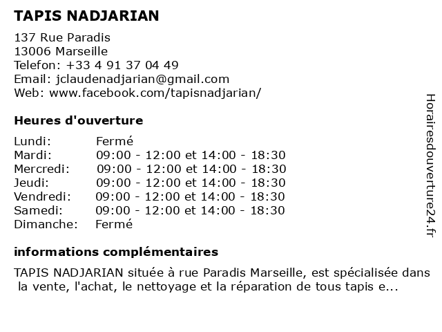| Samedi | 09:00-12:00 et 14:00-18:30 |