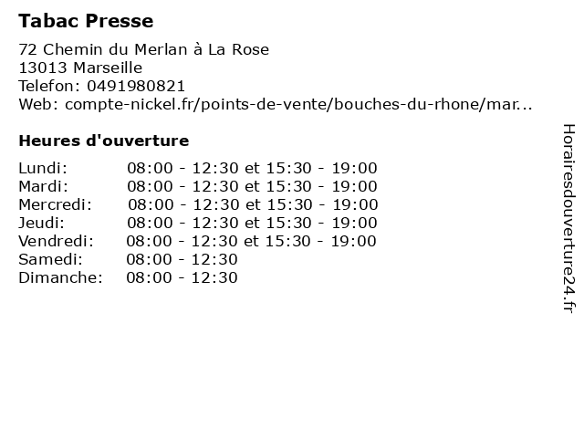 | Mardi | 08:00-12:30 et 15:30-19:00 |