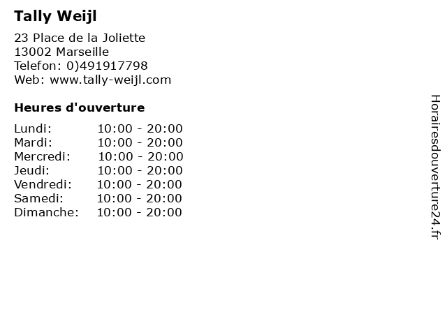 | Lundi | 10:00-20:00 |