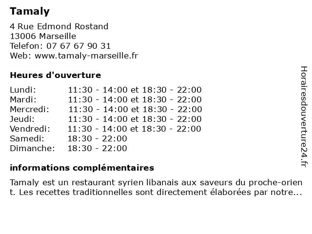 | Mardi | 11:30-14:00 et 18:30-22:00 |