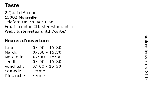 1 Taste (Distance: 0,78 km) 20 Boulevard de Dunkerque, 13012 Marseille burger, business, food, restaurants, sandwhich, taste 2 Taste Restaurant (Distance: 2,32 km) 75 Rue Francis Davso, 13001 Marseille bar, bistro, bistrot, brasserie, café, restaurant, restauration, taste 3 Taste Restaurant (Distance: 3,45 km) 151 Avenue des Aygalades, 13015 Marseille bar, bistro, bistrot, brasserie, café, restaurant, restauration, taste 4 Spok (Distance: 0,00 km) 2 Bis boulevard Euromediterrannée, 13002 Marseille boissons, cuisine, menus, repas, restaurant, spok 5 Little Extra (Distance: 0,26 km) 33 quai du Lazaret, 13567 Marseille accessoires cuisine, accessoires enfants, décorations, extra, little, salle de bain 6 Du Bruit dans la Cuisine (Distance: 0,26 km) - Quai du Lazaret, 13478 Marseille bruit, cuisine, dans, du, la, ustensils |