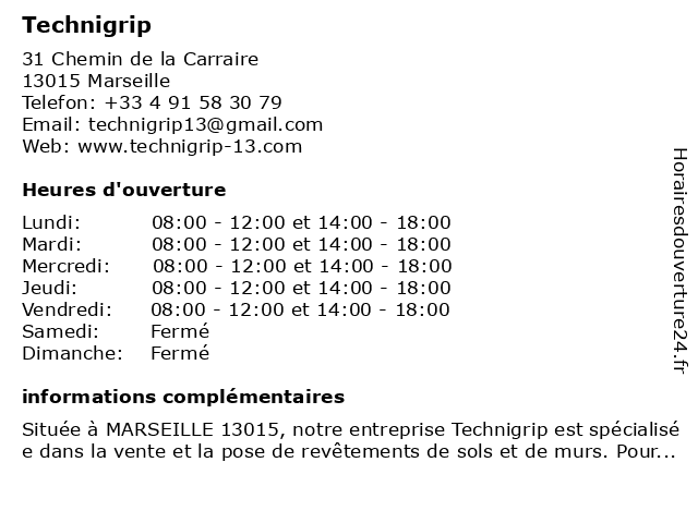 Lundi | 08:00-12:00 et 14:00-18:00 |