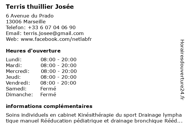 1 Dr Lorrena Thuillier - Radiologue (Distance: 3,50 km) 20 avenue Viton, 13274 Marseille consultation, docteur, dr, lorrena, med, médecin, médecine, radiologue, thuillier, traitement 2 Guidon Pascalet Marie Josée (Distance: 8,10 km) Avenue de la Viste, 13015 Marseille guidon, josée, marie, pascalet 3 Le Jardin de Josée (Distance: 8,55 km) 130 Avenue de la viste, 13015 Marseille bouquets, cadeaux, de, décoration, fleuriste, fleurs, jardin, josée, le, plantes, roses 4 Gertosio Marie-Josée (Distance: 15,49 km) 16 Rue Bernard Palissy, 13400 Aubagne gertosio, josée, marie 5 Dr Marie-Josée Brule - Médecin du travail (Distance: 23,19 km) 450 Rue Albert Einstein, 13290 Aix-en-Provence brule, consultation, docteur, dr, du, josee, josée, marie, med, médecin, traitement, travail 6 Green Acres - Marie-Josée Delcher Immobilier Conseil (Distance: 38,56 km) 15 r Lucien Gueirard, 83110 Sanary-sur-Mer acres, agency, agent, apartment, conseil, delcher, green, home, immobilier, josée, marie, real estate |