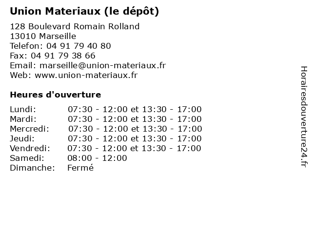 | Mardi | 07:30-12:00 et 13:30-17:00 |
