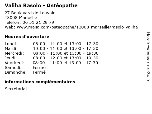 | Lundi | 08:00-11:00 et 13:00-17:30 |