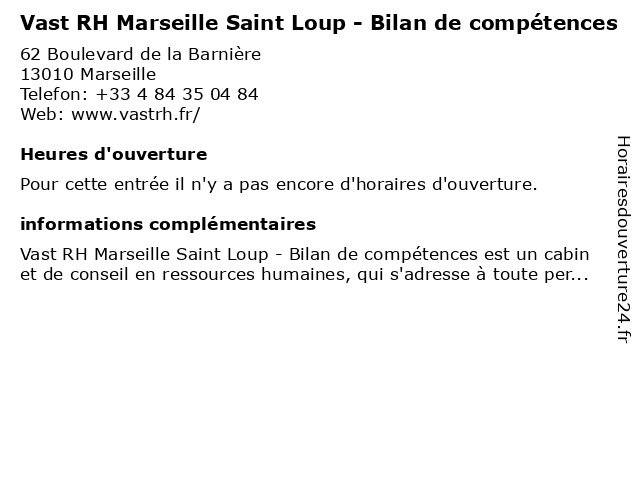 | Appeler Vast RH Marseille Saint Loup - Bilan de compétences | |