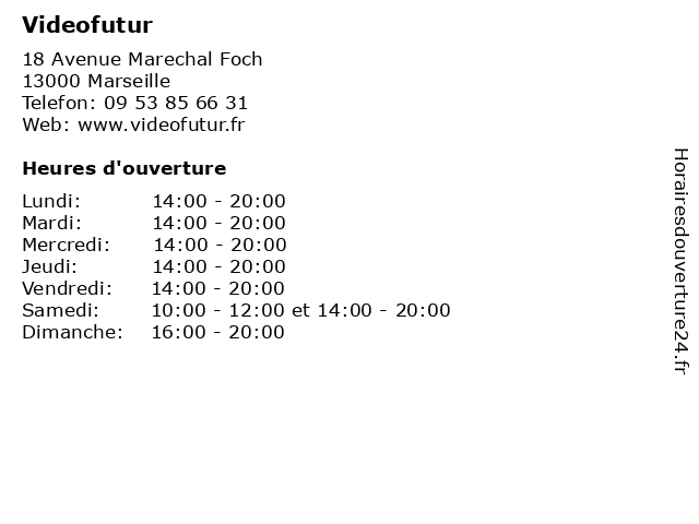 | Samedi | 10:00-12:00 et 14:00-20:00 |