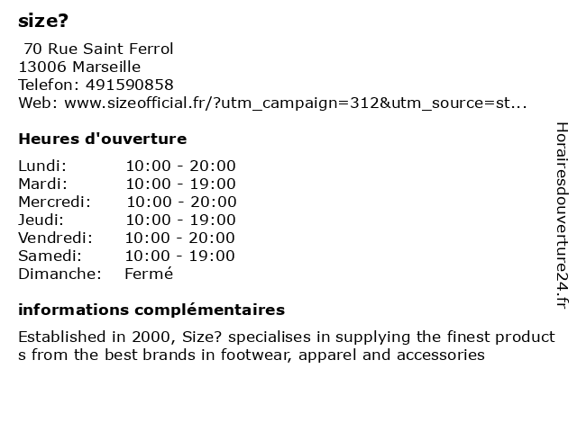 1 Size factory (Distance: 14,37 km) - Chemin de la Grande Campagne, 13480 Cabriès accessoires, factory, habillement, mode, prêt-à-porter, size, vêtements 2 Size Factory (Distance: 53,39 km) 1 Rue des Commandos d'Afrique, 83160 La Valette du Var factory, mode boutique, size, vetements 3 Cafes Chocolats Voisin (Distance: 0,10 km) 71 rue Rome, 13001 Marseille cafes, chocolat, chocolats, magasin de bonbons, voisin 4 Doriane Bijoux (Distance: 0,11 km) 55 Rue Paradis, 13006 Marseille bijoux, boutique, cadeaux, doriane, féminin, magasin 5 El Ganso (Distance: 0,11 km) 49 rue du Paradis, 13006 Marseille boutique, el, el ganso, femme, ganso, homme, magasin 6 Optique Puigcerver (Distance: 0,18 km) 2 Rue Francis Davso, 13001 Marseille accessoires, lunettes, magasin, opticien, optique, puigcerver |