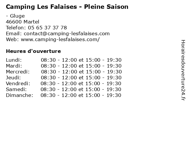 | Dimanche | 08:30-12:00 et 15:00-19:30 |