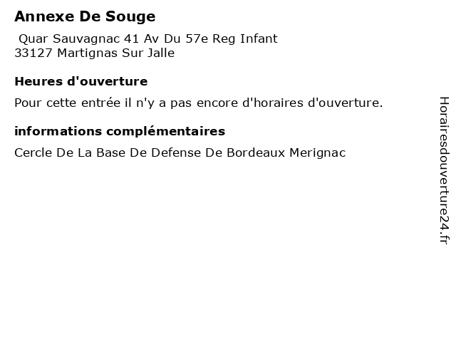 Termes de recherche pour Annexe De Souge:bordeaux, merignac, defense, restaurants, cercle, annexe, sougé, base |