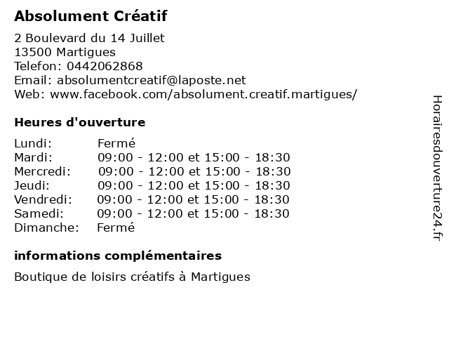 | Mardi | 09:00-12:00 et 15:00-18:30 |
