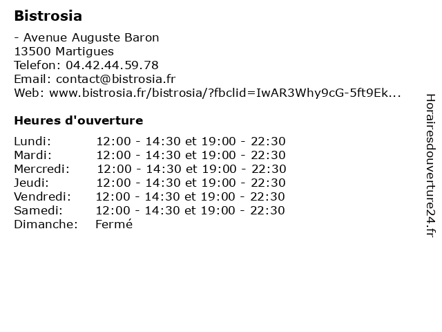 | Mardi | 12:00-14:30 et 19:00-22:30 |