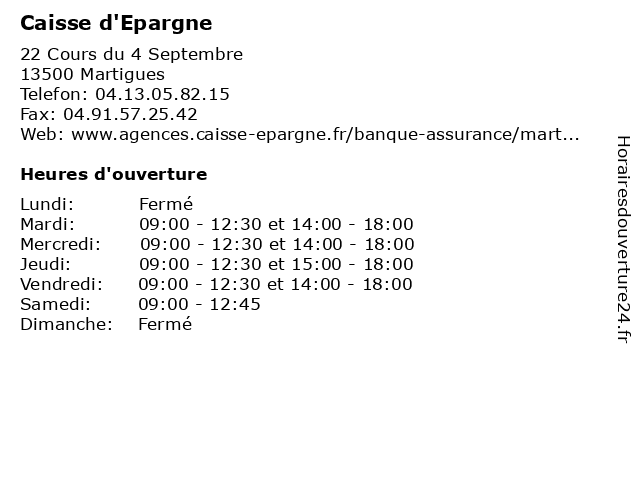 1 Caisse d'Epargne (Distance: 0,63 km) 5 Boulevard du 14 juillet, 13500 Martigues assurances, banques, caisse, d'epargne, services 2 Caisse D'epargne (Distance: 5,13 km) . Place Bellot, 13220 Châteauneuf lès Martigues banque, caisse, carte, d'epargne, services 3 Caisse d'Epargne (Distance: 5,59 km) - Rue Charles Nedelec, 13110 Port De Bouc assurances, banques, caisse, d'epargne, services 4 Caisse D'epargne (Distance: 6,48 km) . Rue Bellefont, 13920 Saint Mitre Les Remparts banque, caisse, carte, d'epargne, services 5 Caisse D'epargne (Distance: 9,15 km) 1 Avenue Clement Monnier, 13960 Sausset les Pins banque, caisse, carte, d'epargne, services 6 Caisse d'Epargne (Distance: 10,88 km) 5 Rue du Colonel Rozanoff, 13620 Carry-Le Rouet assurances, banques, caisse, d'epargne, services |