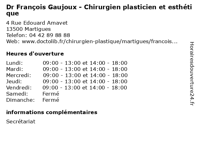 | Lundi | 09:00-13:00 et 14:00-18:00 |