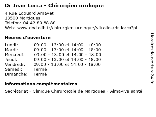 | Lundi | 09:00-13:00 et 14:00-18:00 |