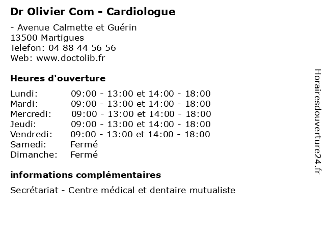| Lundi | 09:00-13:00 et 14:00-18:00 |