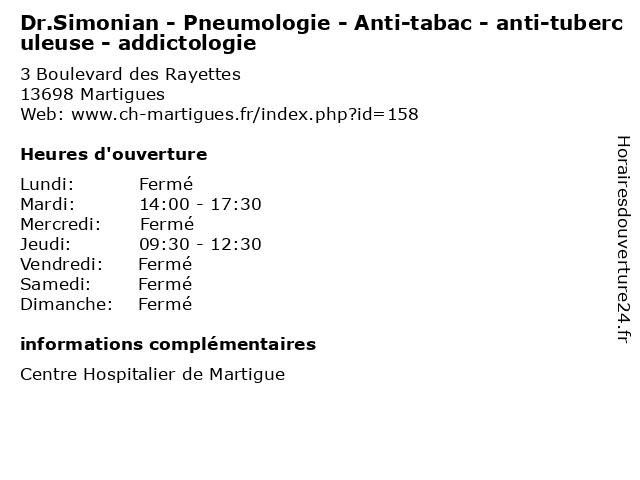 Termes de recherche pour Dr.Simonian - Pneumologie - Anti-tabac - anti-tuberculeuse - addictologie:tabac, santé, pneumologie, docteur, médecins, anti, addictologie, dr.simonian, tuberculeuse |