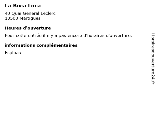 1 La Boca Loca (Distance: 34,29 km) 13 rue de la Couronne, 13100 Aix-en-Provence boca, bocaloca, burger, fastfood, frites, grill, la, loca, mexicain, restaurant 2 La Vida Loca (Distance: 34,42 km) 11 Rue Félibre Gaut, 13100 Aix-en-Provence alcool, bar, bières, la, loca, pub, restauration, vida 3 Loca Service (Distance: 56,84 km) 170 Avenue des Îles, 13160 Châteaurenard loca, location, réfrigérées, service, vente, vitrines |
