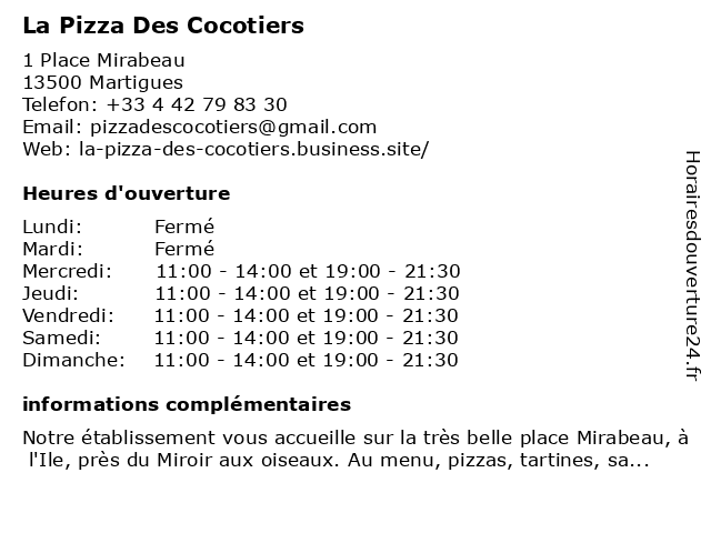 Mercredi | 11:00-14:00 et 19:00-21:30 |