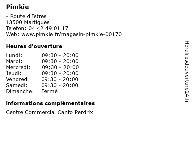 1 Pimkie (Distance: 15,30 km) - Route Nationale 113, 13127 Vitrolles accessoires, enfants, filles, garçons, habillement, mode, pimkie, pret à porter, vêtements 2 Pimkie (Distance: 21,74 km) 113 Route Nationale, 13127 Vitrolles accessories, cafe, costume, homme, mode, pantalons, pimkie, pulls, restaurant, service 3 Pimkie (Distance: 25,07 km) 11 Avenue de Saint Antoine, 13464 Marseille beaute, chaussures, deco, enfants, mode femmes, mode hommes, pimkie, restaurant, sport 4 Pimkie (Distance: 25,54 km) 15 Avenue de Saint Antoine, 13015 Marseille boutique, femme, mode, pimkie, vetements 5 Pimkie (Distance: 30,08 km) . Avenue Prosper Mérimée, 13014 Marseille accessoires, beaute&sante, cafe, chaussures, enfants, mode femmes, mode hommes, optique, pimkie, restaurant, service, sport 6 Pimkie (Distance: 30,23 km) 27 Rue Saint-Ferréol,, 13001 Marseille chaussures, lingerie, mode enfant, mode femmes, mode hemmes, pimkie, sport |