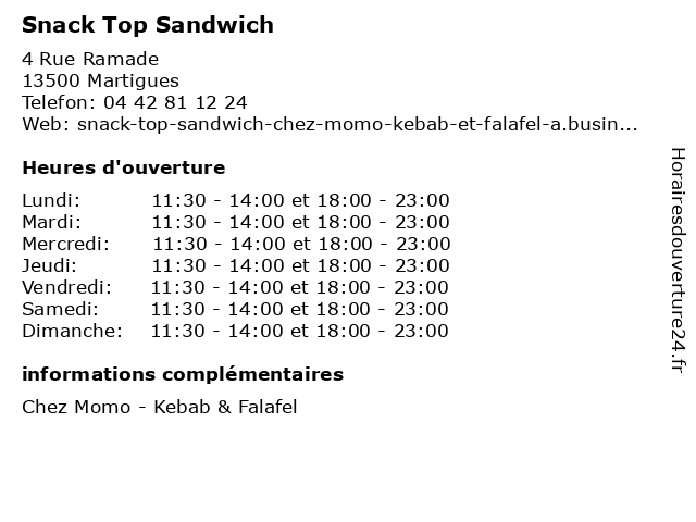 | Mercredi | 11:30-14:00 et 18:00-23:00 |