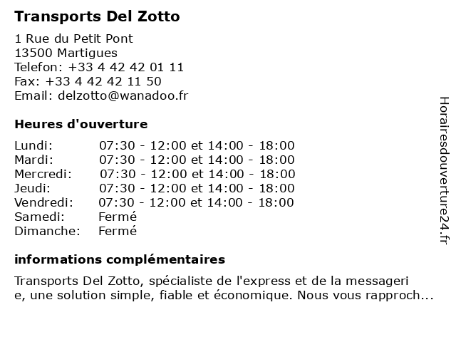 | Lundi | 07:30-12:00 et 14:00-18:00 |