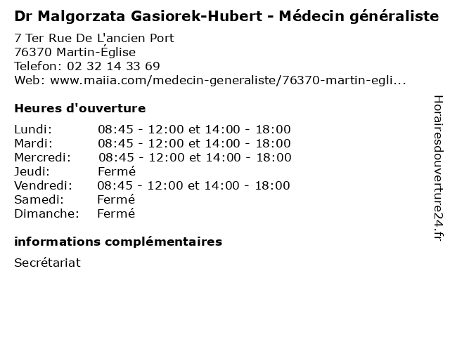 Termes de recherche pour Dr Malgorzata Gasiorek-Hubert - Médecin généraliste:soin, hubert, medical, généraliste, docteur, médecin, dr, malgorzata, gasiorek |