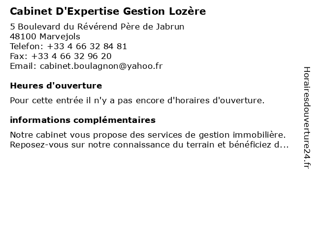 | Appeler Cabinet D'Expertise Gestion Lozère | |