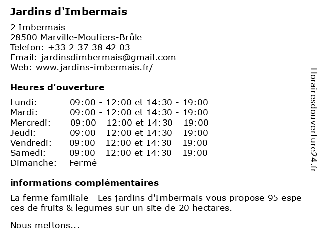| Mercredi | 09:00-12:00 et 14:30-19:00 |