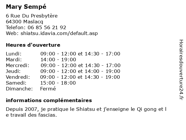 | Vendredi | 09:00-12:00 et 14:30-19:00 |