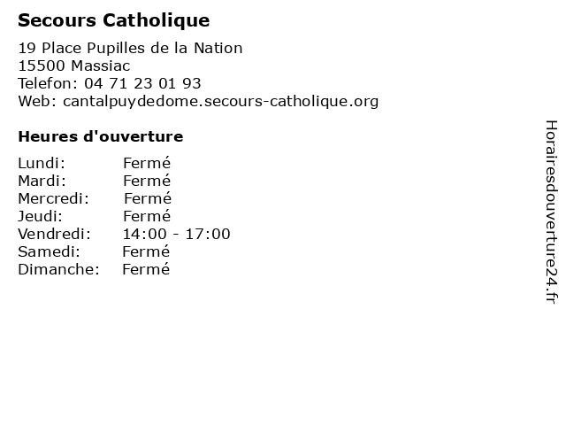 1 Centre de secours Massiac - SDIS 15 (Distance: 0,37 km) 3 place Dr Moret, 15500 Massiac 15, centre, de, lutte contre les incendies, massiac, pompier, protection, prévention, sdis, secours 2 Centre de secours La Chapelle-Laurent - SDIS 15 (Distance: 9,24 km) - Le Bourg, 15500 La Chapelle-Laurent 15, centre, chapelle, de, la, laurent, lutte contre les incendies, pompier, protection, prévention, sdis, secours 3 Centre de secours Ardes sur Couz - SDIS 63 (Distance: 17,53 km) - Lotissement du Vivier, 63420 Ardes sur Couz 63, ardes, centre, couz, de, lutte contre les incendies, pompier, protection, prévention, sdis, secours, sur 4 Secours Catholique (Distance: 46,90 km) 1 Rue du Parc, 63450 Saint Amant-Tallende associatif, association, bénévolat, bénévole, catholique, secours, solidaire, solidarité 5 Secours Catholique (Distance: 48,03 km) 1 Place de l’Eglise, 63730 Les Martres de Veyre associatif, association, bénévolat, bénévole, catholique, secours, solidaire, solidarité 6 Secours Catholique (Distance: 51,70 km) 50 Rue du Château, 63150 La Bourboule associatif, association, bénévolat, bénévole, catholique, secours, solidaire, solidarité |