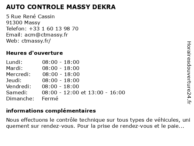 1 Centre contrôle technique DEKRA (Distance: 0,01 km) 5 Rue René Cassin, 91300 Massy 4x4, camping car, centre, collection, contrôle, dekra, diesel, electrique, essence, gazole, suv, technique, utilitaire, voiture 2 Centre contrôle technique DEKRA (Distance: 4,26 km) 69 Avenue de la Division Leclerc, 92290 Châtenay-Malabry 4x4, camping car, centre, collection, contre visite controle technique, controle anti pollution, controle technique 4x4, controle technique automobile, controle technique utilitaire, contrôle, contrôle technique reglementaire, contrôle technique vehicule, contrôle technique voiture, dekra, diesel, electrique, essence, gazole, suv, technique, utilitaire, voiture 3 Dekra Industrial (Distance: 8,50 km) 36 Rue Alphonse Pluchet, 92220 Bagneux automobile, cetification, dekra, gestion, industrial, industrie, inspection, services, sinistres, transport 4 Centre d’examen du code de la route - DEKRA (Distance: 9,12 km) 2 rue Alfred de Musset, 92320 CHATILLON centre, code, cours, de, dekra, du, d’examen, examens, formation, la, permis, route 5 Dekra (Distance: 9,88 km) 39 Avenue Aristide Briand, 94110 Arcueil automobile, dekra, services, technique 6 Dekra (Distance: 10,61 km) . Avenue De La Carelle, 94290 Villeneuve Le Roi automobile, dekra, services, technique |