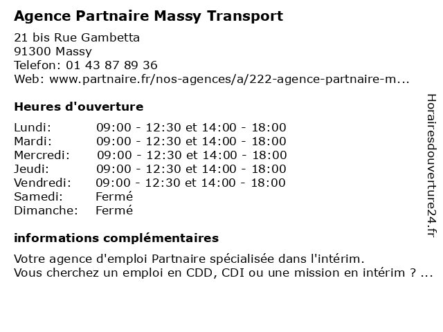 | Lundi | 09:00-12:30 et 14:00-18:00 |