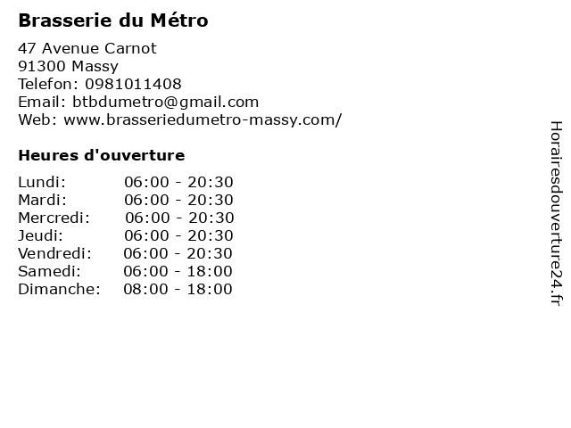 | Lundi | 06:00-20:30 |