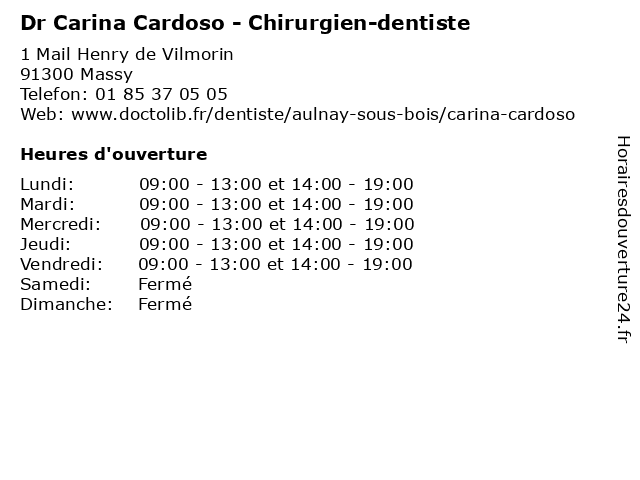 | Lundi | 09:00-13:00 et 14:00-19:00 |