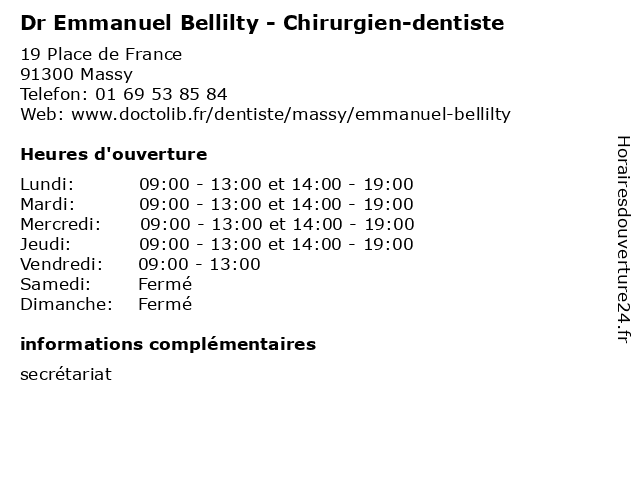 | Lundi | 09:00-13:00 et 14:00-19:00 |