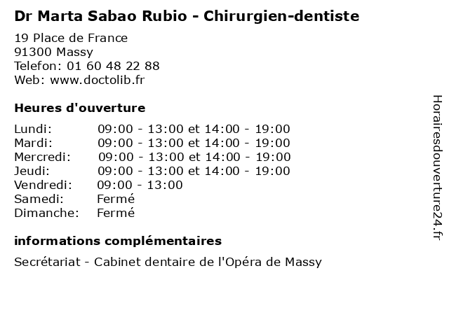 | Lundi | 09:00-13:00 et 14:00-19:00 |