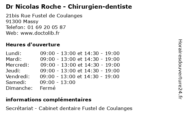 | Lundi | 09:00-13:00 et 14:30-19:00 |