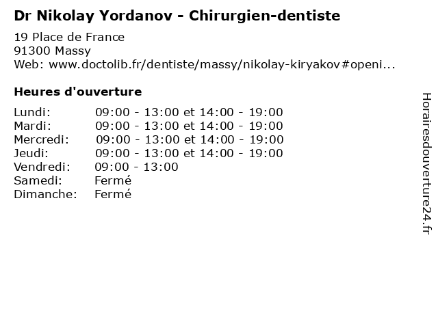 | Lundi | 09:00-13:00 et 14:00-19:00 |