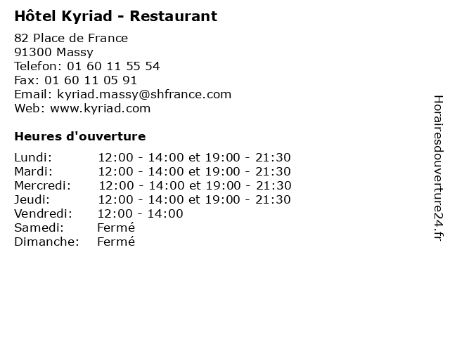 | Jeudi | 12:00-14:00 et 19:00-21:30 |
