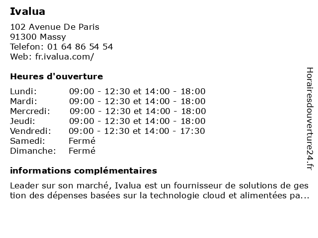 Lundi | 09:00-12:30 et 14:00-18:00 |