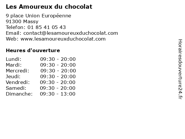 | Samedi | 09:30-20:00 |