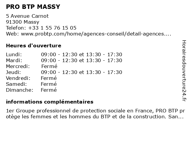 Lundi | 09:00-12:30 et 13:30-17:30 |