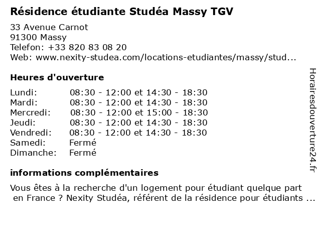 | Lundi | 08:30-12:00 et 14:30-18:30 |