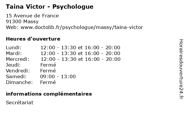 | Mardi | 12:00-13:30 et 16:00-20:00 |