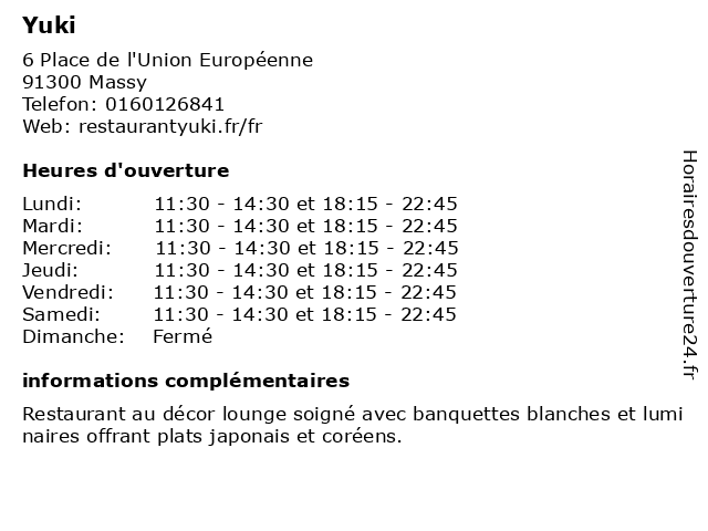 | Mardi | 11:30-14:30 et 18:15-22:45 |