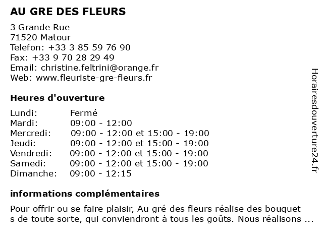 | Lundi | Fermé |