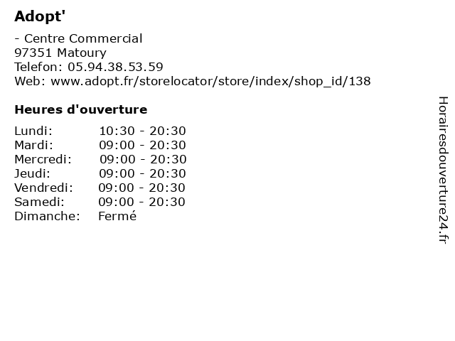| Lundi | 10:30-20:30 |