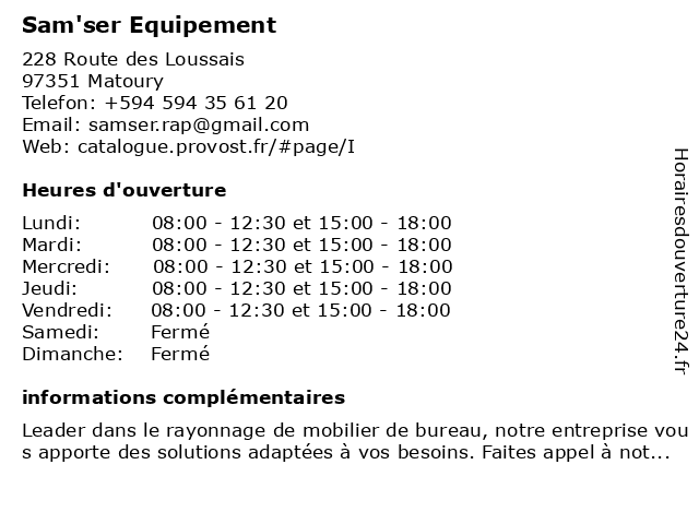 | Mardi | 08:00-12:30 et 15:00-18:00 |